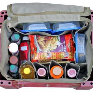 The Kitchen Organiser is ideal for crockery, utensils and condiments. It comes with various pockets and sleeves, including flaps in the lid of the bag. This toughtfully design organiser fits perfectly in a low lid ammo box and can also be used as a stand-alone storage bag.